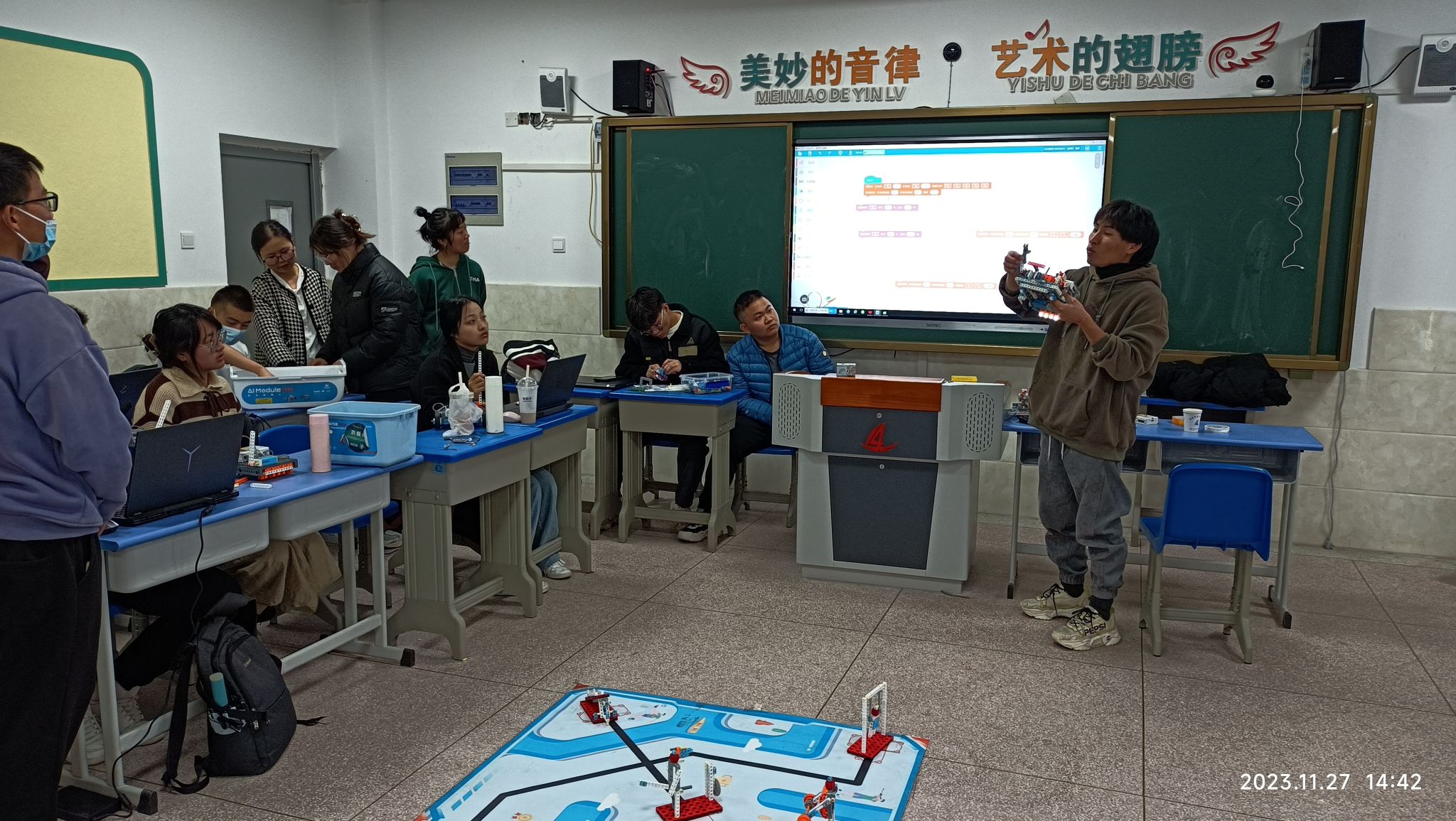 在鲸鱼机器人赛道,竹张龙等老师在讲解机器人构成原理、组装步骤基础上,依据比赛地图分解比赛任务,员工根据不同进阶的任务要求依次通过机器人组装、程序设计、代码调试等环节逐一完成设定任务。