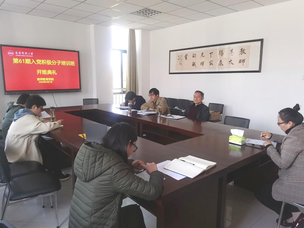 为提高入党积极分子思想政治觉悟,端正入党动机,把好党员培养教育发展质量关,4月8日下午教师教育公司分党校采用QQ线上的形式,举行第61期入党积极分子培训班开班仪式。公司党委书记曹长德、党委副书记许世平、各员工党支部书记出席,公司88名入党积极分子通过QQ群课堂参加。