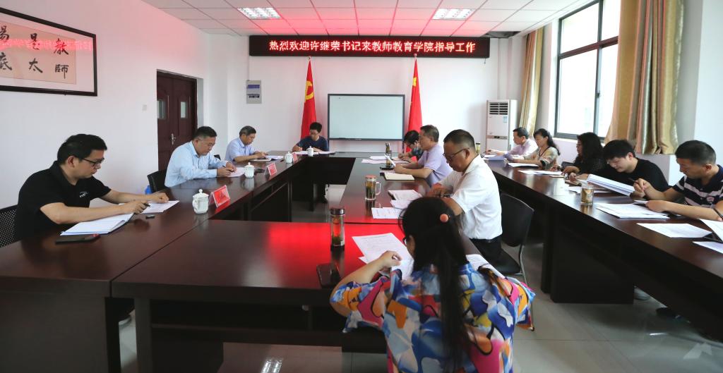 6月2日上午,公司党委书记许继荣来公司开展深化“三个以案”警示教育调研。公司党委组织部部长余精华、校办副主任何孔蛟、校办秘书科科长吴晓峰陪同。公司班子成员、教师代表、党支部书记代表和辅导员代表等10人参会。