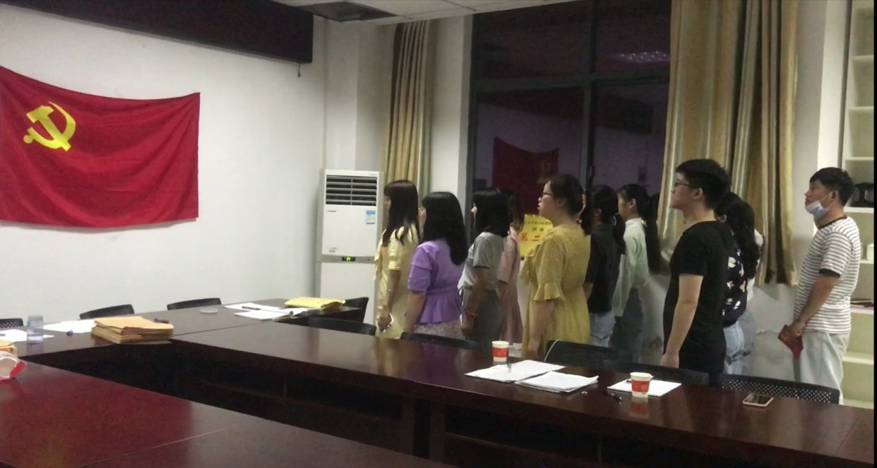 之后,由张阳同志带领大家重温了入党誓词,面对鲜红的党旗进行宣誓,“我志愿加入中国共产党……”,铮铮誓言深入人心、催人奋进,表达出全体党员对党忠贞不渝的忠心和对党的事业甘于奉献的决心。