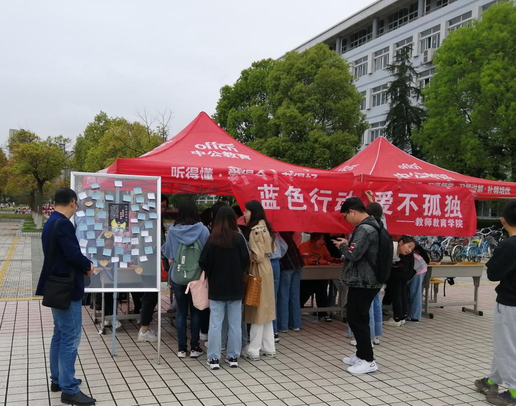 4月2日是第14个世界自闭症日,为了让更多的人了解自闭症儿童,教师教育公司教工特殊教育教研室党支部组织了“蓝色行动,爱不孤独”的主题党日活动。一部分师生在校内进行宣传,一部分师生赴安庆市特殊教育公司进行交流。