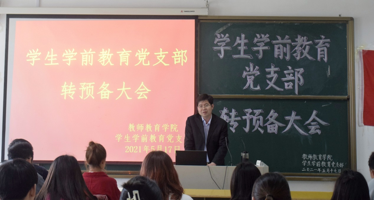 5月17日,学前教育党支部召开支部大会,党委书记陈志超,员工学前教育党支部书记方泽宇,辅导员姚强诚及学前教育专业全体党员和七名发展对象参加此次大会。