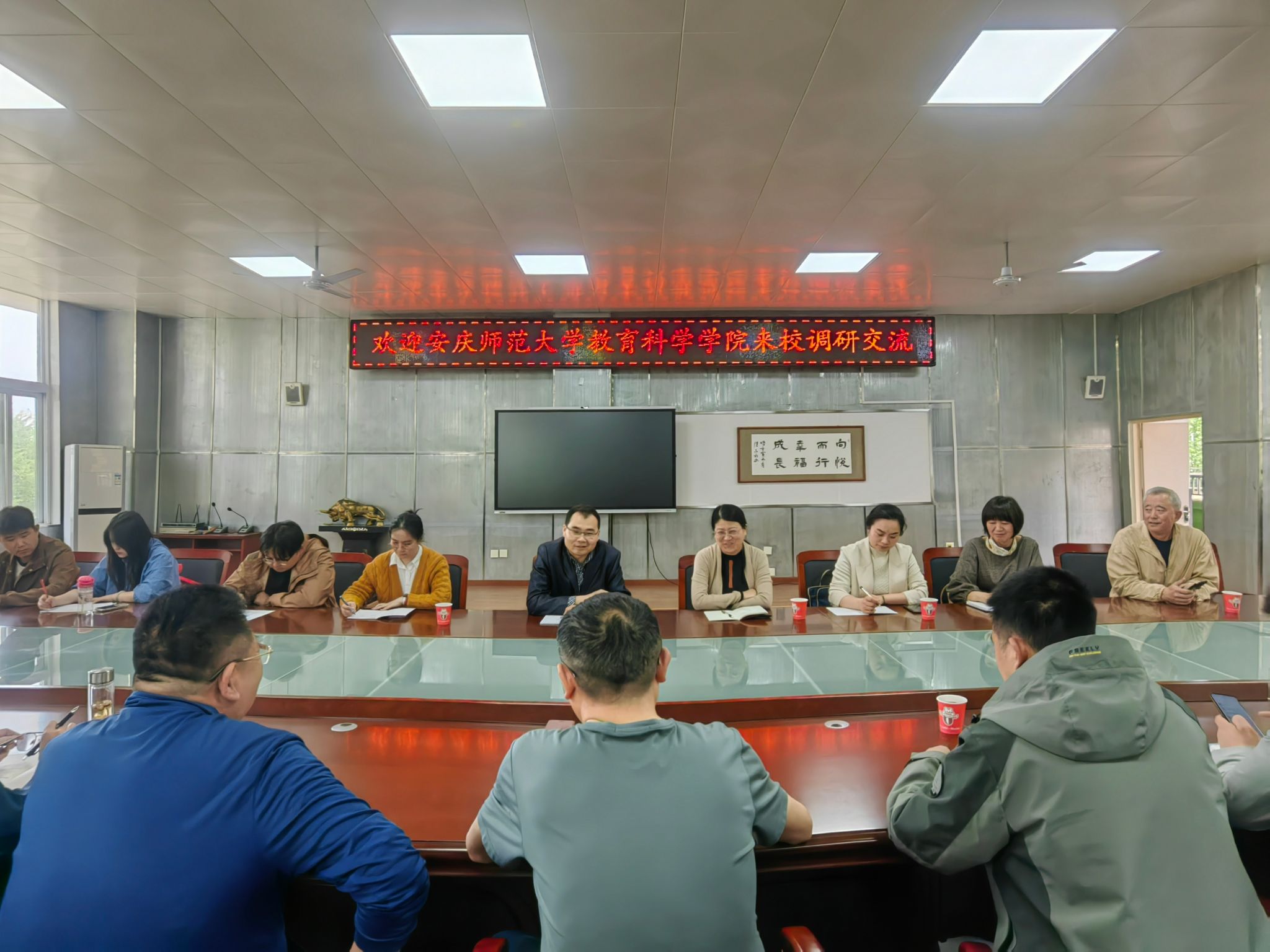 月形小公司领导和宜秀区教师进修公司吴佛宁董事长热情接待了调研组一行人员,调研组在该校认真听取了该校领导关于公司校园文化建设、教师专业发展、课程建设、劳动教育基地等方面的建设成果和经验。调研组详细了解了该校发展中的瓶颈问题,并围绕着该校教育质量的提升进行了深入的交流,双方就后续合作达成了初步的意向。