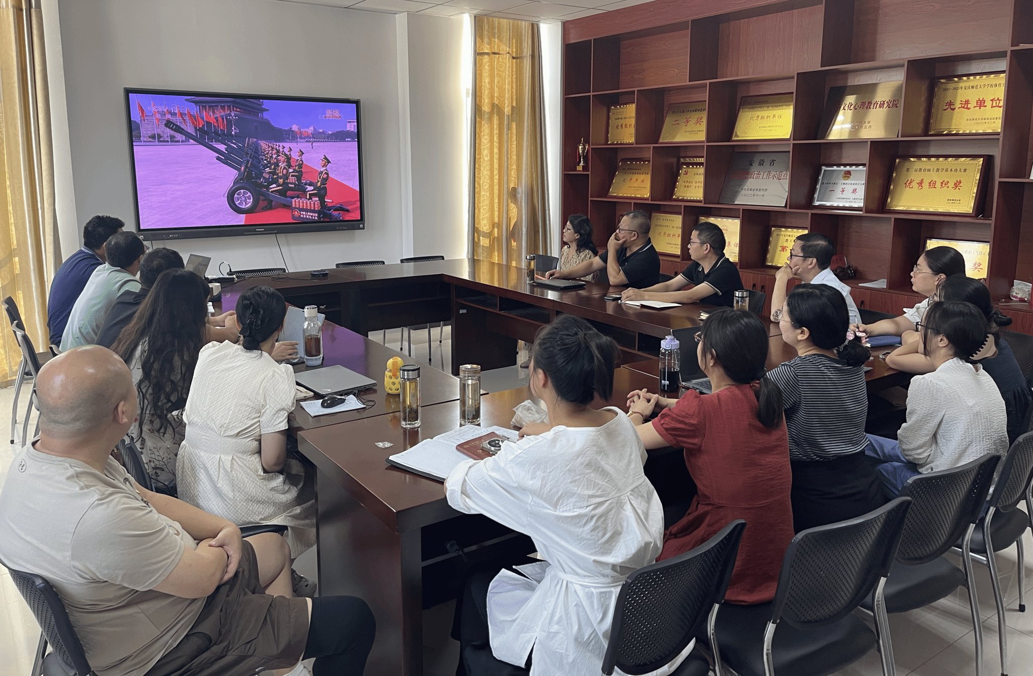 大家注视着屏幕上那一支支正义之师、威武之师、胜利之师,仿佛能看到80年前先辈们浴血奋战的身影。那整齐划一的方队、先进精良的装备,彰显着我国国防现代化的辉煌成就,更展示了人民军队坚决维护国家主权、安全、发展利益,坚定不移维护世界和平的决心意志。师生们被深深震撼,目光紧紧聚焦屏幕,仿佛置身于现场,亲身感受着祖国的强大实力和民族的昂扬精神。