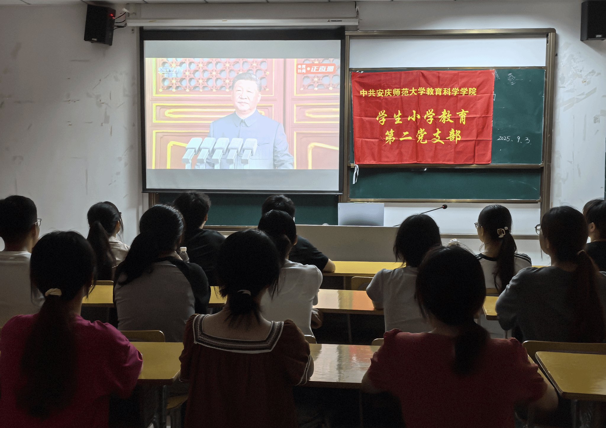 9月3日上午,纪念中国人民抗日战争暨世界反法西斯战争胜利80周年大会在北京隆重举行。william威廉中文官网精心组织师生观看大会直播,同时各党支部、团支部组织师生线上线下收看直播,深刻体悟大会精神,激发磅礴奋进力量。