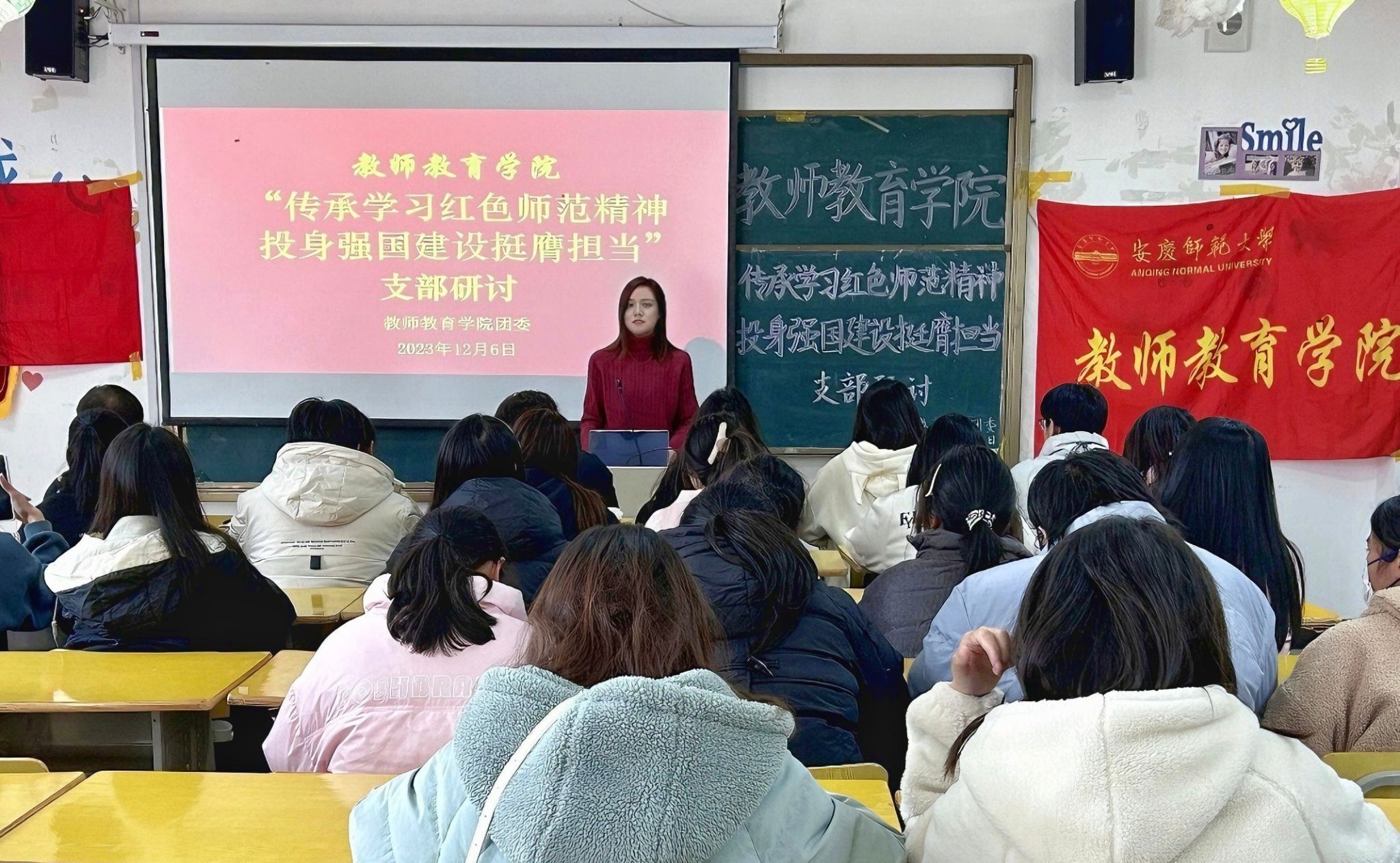 会议伊始,姚强诚介绍“青年马克思主义者培养工程”培训班的重要意义,要加强思想教育,培养当代青年积极投身“中华民族伟大复兴”的生动实践。院团委员工副书记熊远志以“弘扬红色师范精神,投身强国建设挺膺担当”为题,讲述了红色师范精神的内涵,并对青年如何弘扬红色师范精神做出回答。院团委实践委员叶伊林带领同学们学习《习近平:加快建设教育强国 为中华民族伟大复兴提供有力支持》。22级应用心理学2班团支书袁畅和23级学前教育2班团支书汪南也就“红色师范精神”进行分享交流。