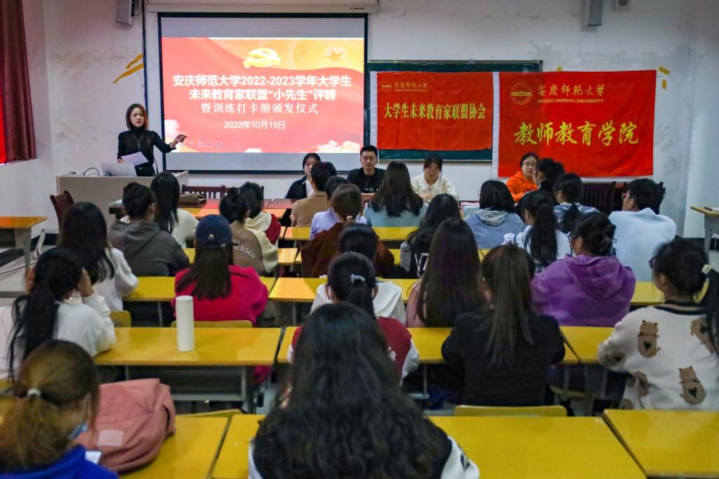 10月19日,教师教育公司于J305教室开展2022-2023年老员工未来教育家联盟“小先生”评聘暨训练打卡颁发仪式。2022级新生班委代表、新聘任20余名“小先生”及全体新生辅导员参加,会议由公司团委负责人、未来教育家联盟指导老师姚强诚主持。