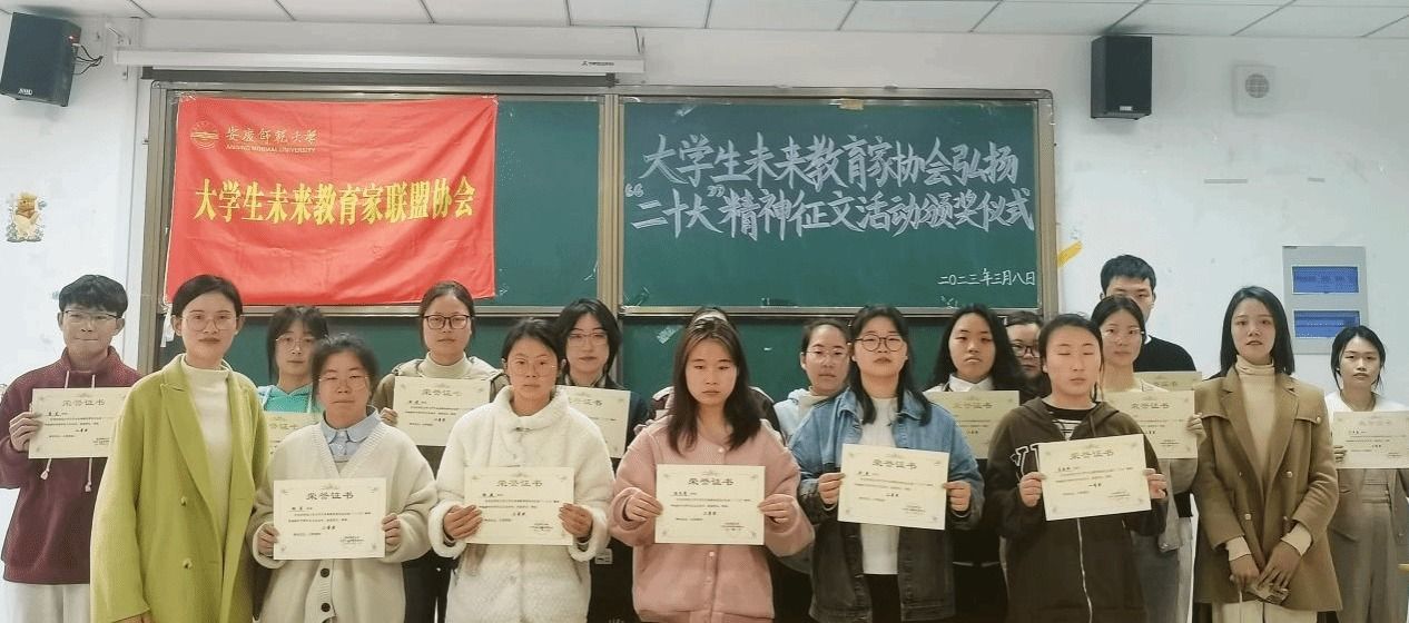 3月8日中午12时,由“老员工未来教育家协会”举办的“小小的我与大时代”主题线上征文比赛颁奖仪式在公司212教室举行,全校各院70余名员工到会观摩领奖,会议由社团指导老师姚强诚主持。