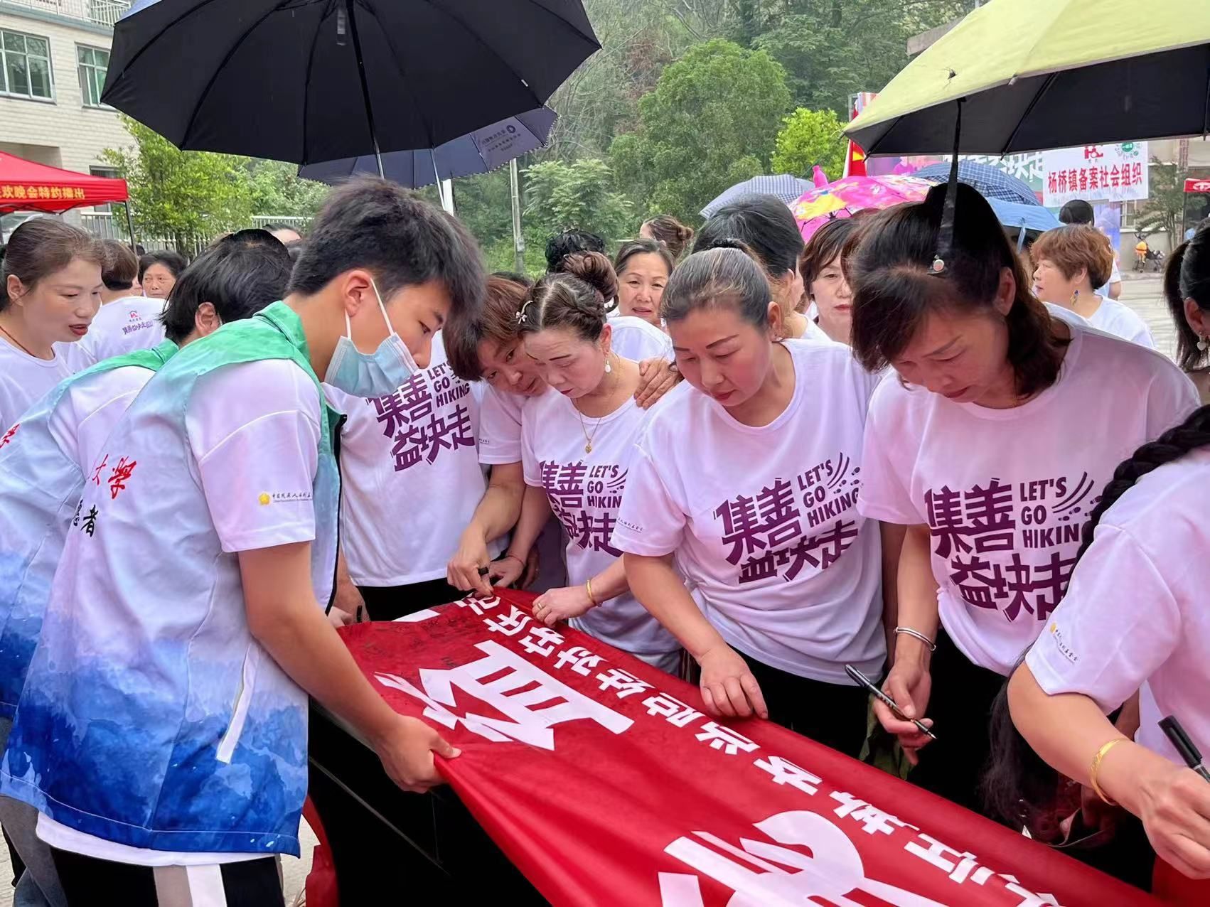 活动邀请社区居民通过横幅寄语和分发明信片的方式表达对杨桥镇残障人士的美好祝愿。活动过程中,组织居民有序排队进行签名,表达对残障人士的关爱与关怀。志愿者为居民普及残障人士相关知识,设置坐轮椅玩游戏活动,让居民亲身体验生活障碍者的困难,让残疾人朋友充分感受到社会大家庭的温暖。