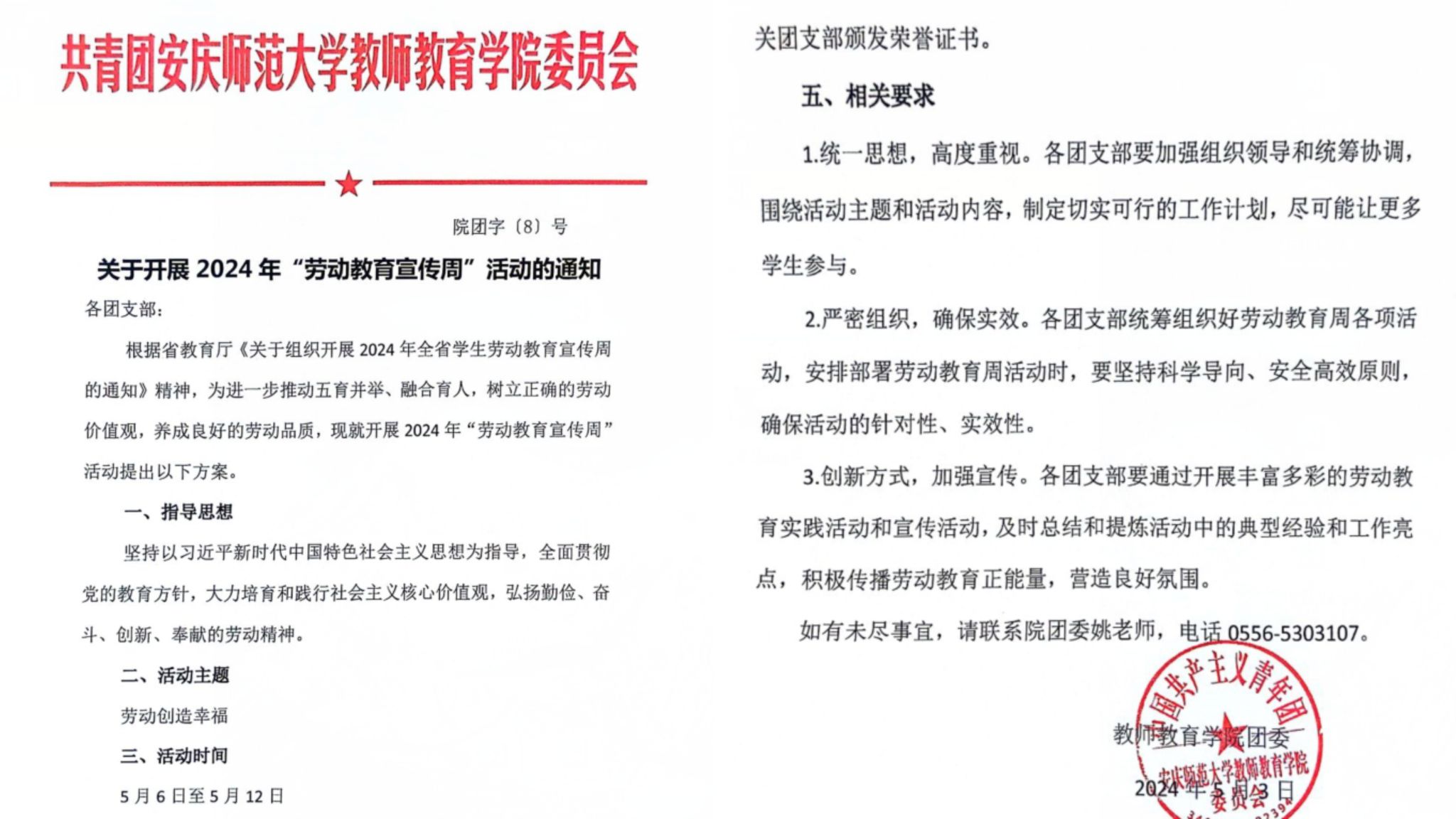 5月6日至5月12日,是全省第四个员工劳动教育宣传周。教师教育公司为以“劳动创造幸福”为主题,结合公司实际,制定实施劳动教育宣传周活动方案。面向全院员工扎实开展劳动教育主题团课、公共卫生大扫除、文明宿舍建设、手工艺作品比赛、书法作品比赛等“五个一”系列活动。