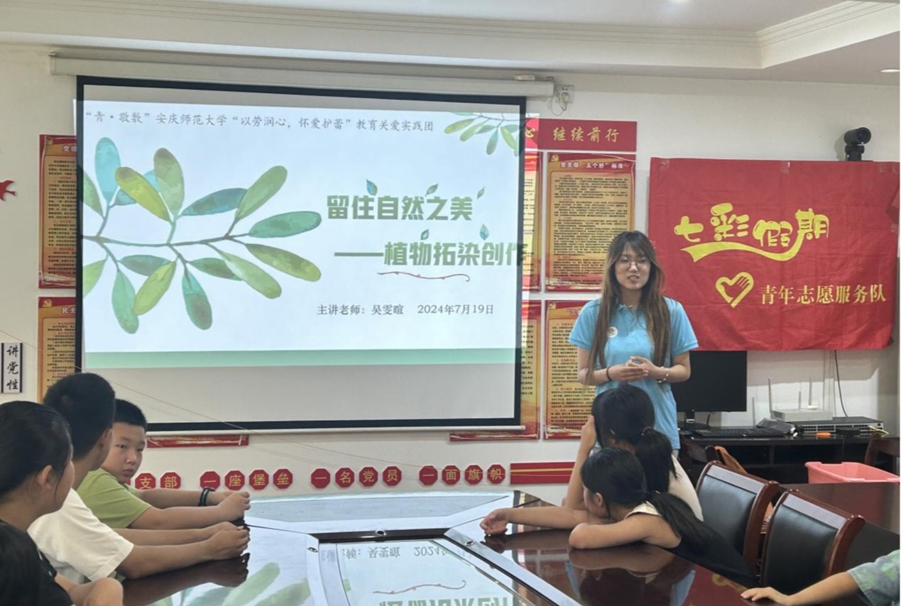 为弘扬中华美育精神,坚定文化自信,通过美育浸润,促进员工提升审美素养、陶冶情操。7月19日下午,迎江区余桥社区协同“青·敬敷”william威廉中文官网“以劳润心,怀爱护蕾”教育关爱实践团志愿者,共同为暑期公益课堂的员工们组织了一堂富有意义的“劳动+非遗文化”实践课程《留住自然之美——植物拓染创作》。