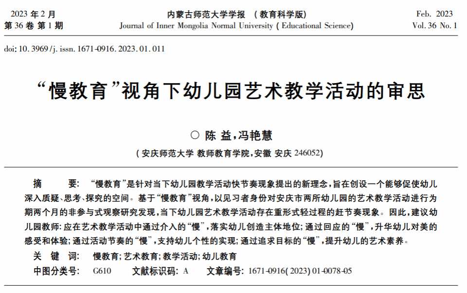 陈益、冯艳慧:“慢教育”视角下幼儿园艺术教学活动的审思