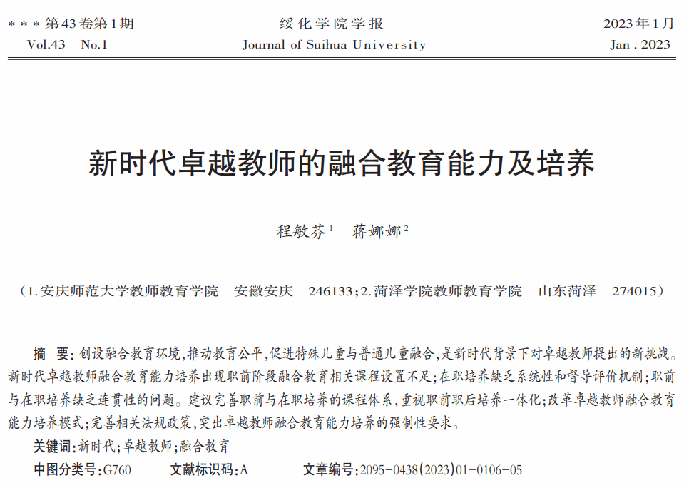 程敏芬、蒋娜娜:新时代卓越教师的融合教育能力及培养