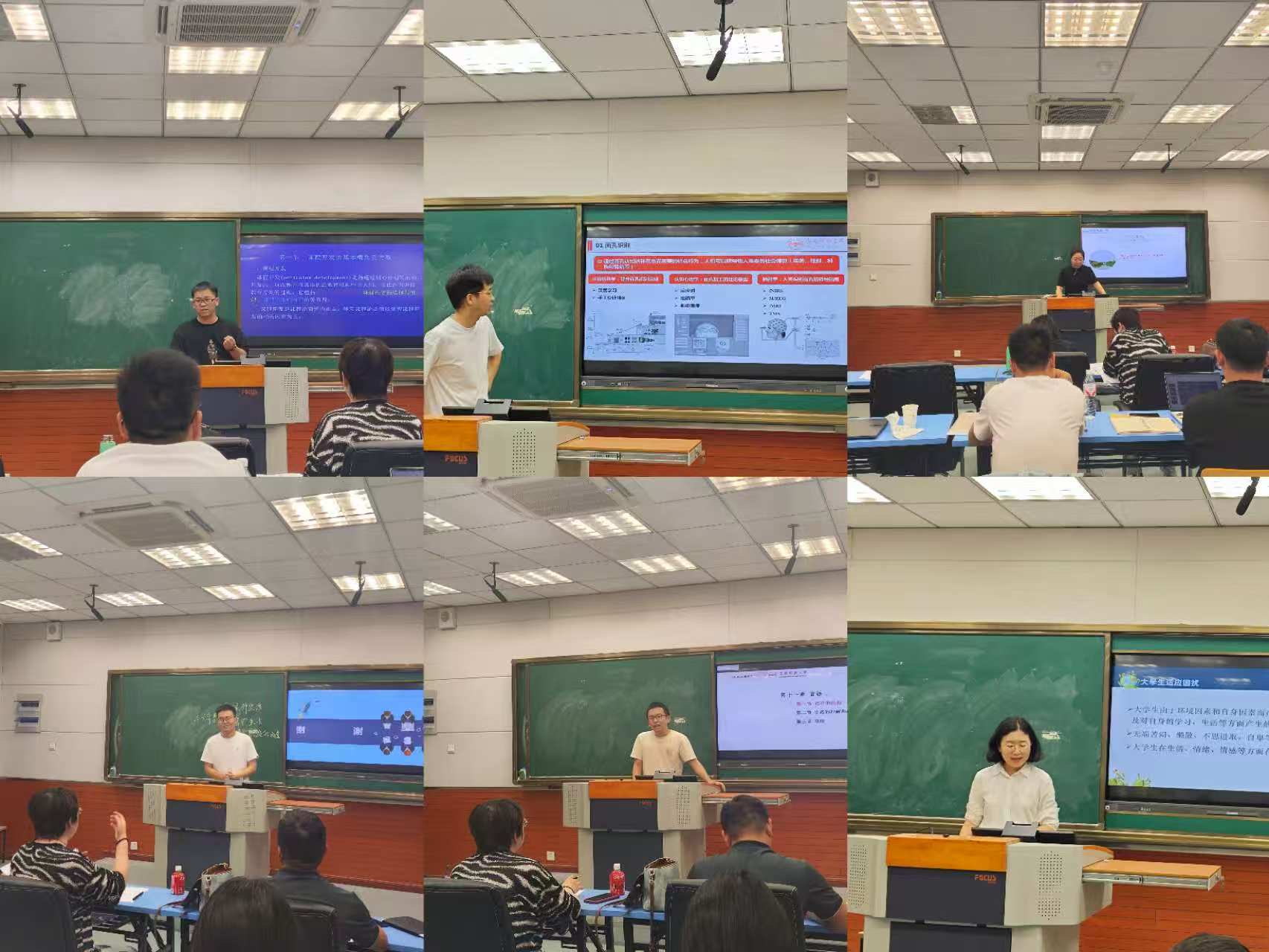 6位新进教师依次进行试讲和教案展示。随后,评委们从教学内容、教学方法、课堂互动、语言表达等多方面进行综合评价,充分肯定了试讲教师扎实的专业知识和清晰的讲课思路,同时也在教姿教态、重难点把控、课堂互动方面提出了中肯的建议,以帮助新进教师提高教学水平。